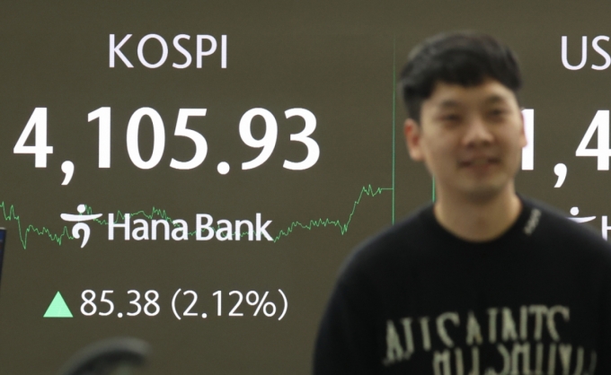 22일 코스피는 전 거래일 대비 85.38포인트(2.12%) 오른 4105.93에 장을 마쳤다. 지난달 26일 이후 첫 2%대 상승이다.