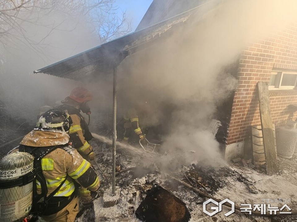 불이 나자 집주인 A씨(70대, 남)가 초기 진화에 나섰다가 가슴과 팔 부위에 화상을 입었다.