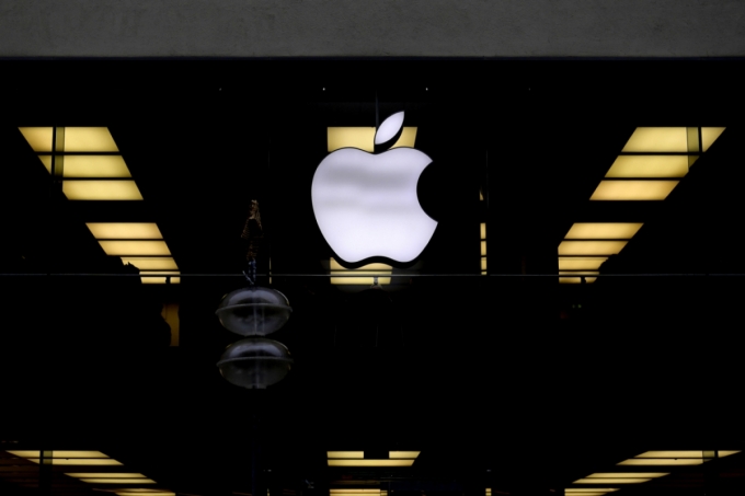 독일 뮌헨의 한 매장에서 2023년 11월13일 애플 로고가 조명되고 있다. /AP=뉴시스 |