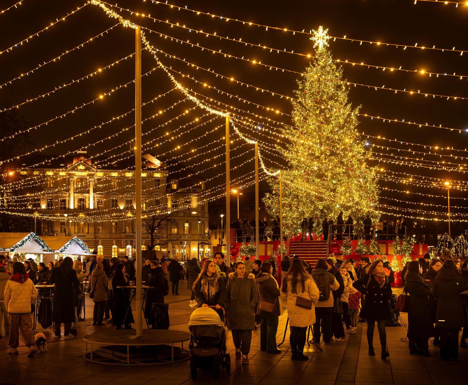 리투아니아 빌뉴스 대성당 광장 앞에 마련된 크리스마스 마켓에서 시민들이 성탄절 관련 상품을 보며 즐거운 시간을 보내고 있다. 빌뉴스=AP 뉴시스 |