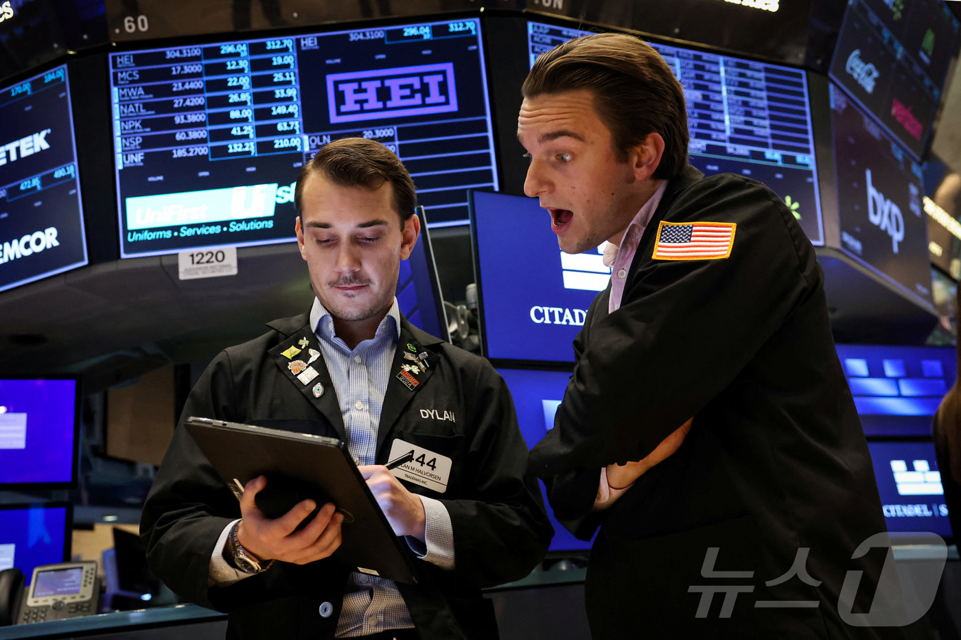 뉴욕 증권거래소 객장에서 트레이더들이 일하고 있다. ⓒ 로이터=뉴스1 |