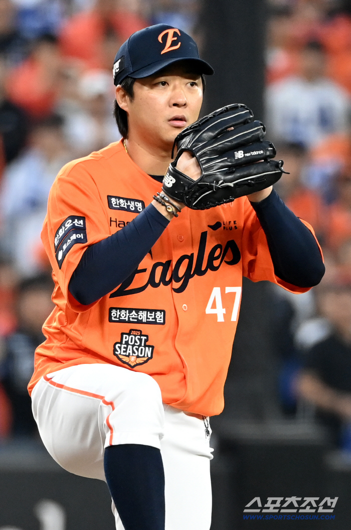 18일 대전한화생명볼파크에서 열린 삼성과 한화의 PO 1차전. 한화 김범수가 투구를 하고 있다. 대전=허상욱 기자wook@sportschosun.com/2025.10.18/ |