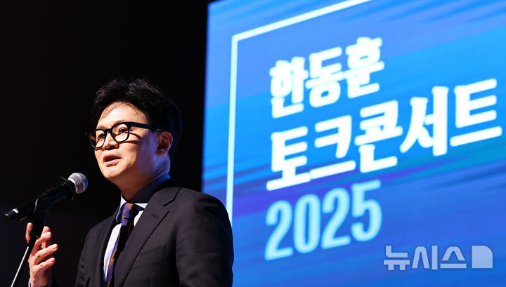 [고양=뉴시스] 최진석 기자 = 한동훈 전 국민의힘 대표가 지난 21일 경기 고양시 킨텍스 그랜드볼룸에서 열린 토크콘서트에서 인사말을 하고 있다. 2025.12.21. myjs@newsis.com |