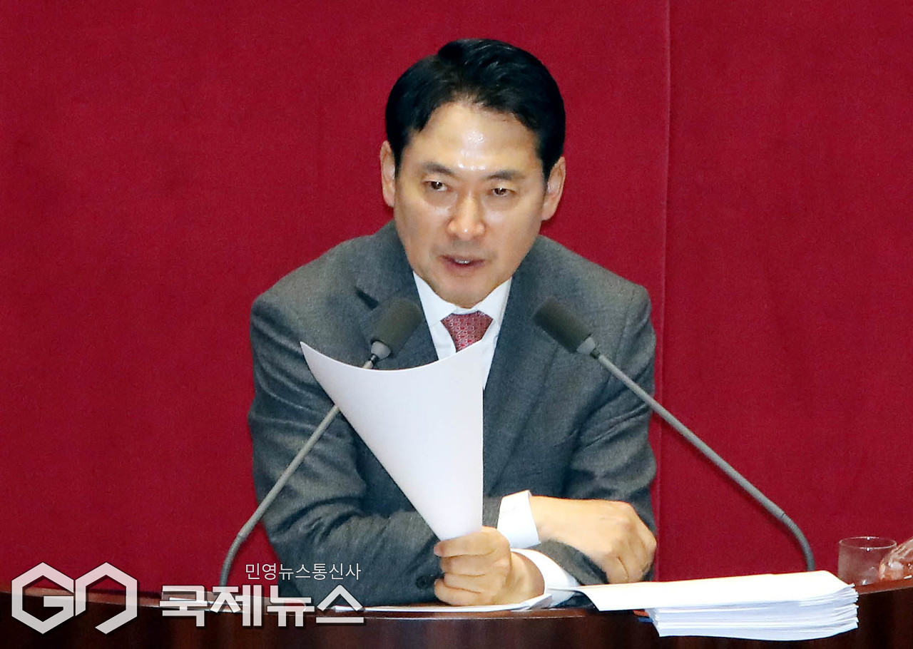 (서울=국제뉴스) 장동혁 국민의힘 대표가 23일 오전 서울 여의도 국회에서 열린 제430회국회(임시회) 제2차 본회의에서 '내란전담재판부설치 관련 법안'에 대한 무제한토론(필리버스터)을 하고 있다./사진=이용우 기자