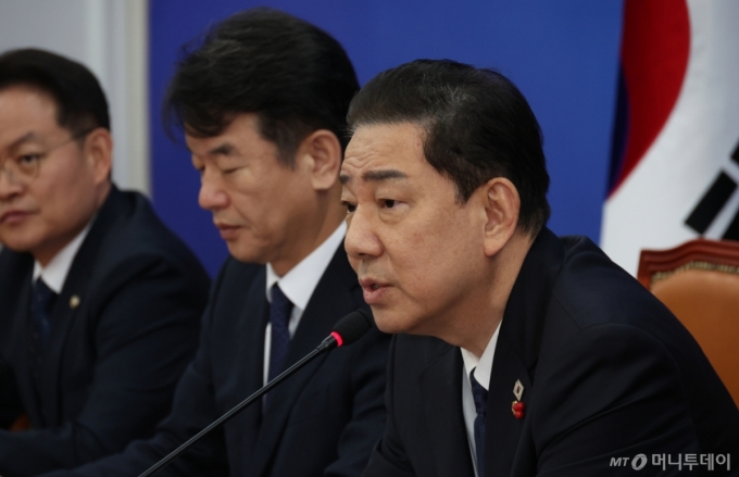 [서울=뉴시스] 김금보 기자 = 김병기 더불어민주당 원내대표가 23일 오전 서울 여의도 국회에서 열린 원내대책회의에서 발언을 하고 있다. 2025.12.23. kgb@newsis.com /사진=김금보 |