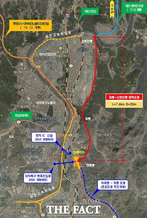 [더팩트ㅣ대전=정예준 기자] 대전시는 대덕구 연축동~신탄진 용정초교를 잇는 '와동~신탄진동 도로개설사업'이 지난 22일 기획재정부 재정사업평가위원회 심의를 거쳐 예비타당성조사 대상사업으로 선정됐다고 23일 밝혔다.