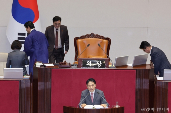 우 의장은 "주 부의장이 본인의 정치적 입장을 취하는 것과 사회교대를 거부하는 것은 별개의 문제"라며 "주 부의장에게 공식적으로 요청한다. 오늘 오후 11시부터 내일(24일) 오전 6시까지 사회를 맡아달라"고 했다.