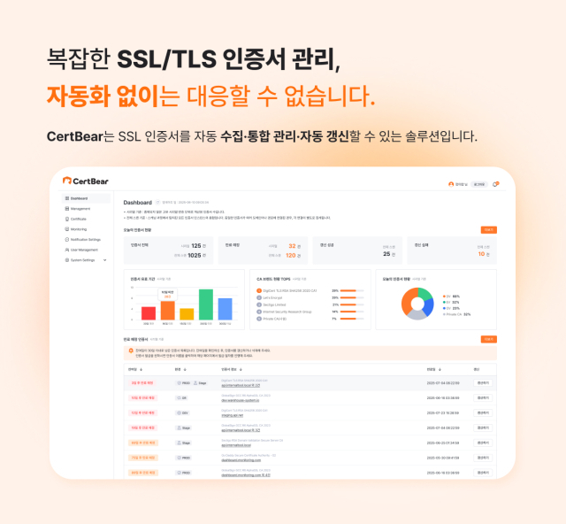 서트베어 v2.0은 기존 인증서 자동 수집, 모니터링, 사전 알림, 자동 갱신 기능을 기반으로 대규모 인증서 환경에서도 안정적으로 운영할 수 있도록 에이전트 성능과 보안, 자동 관리 구조를 전반적으로 개선했다. 복잡한 인증서 운영 환경을 보다 체계적으로 관리할 수 있도록 설계됐다는 설명이다.