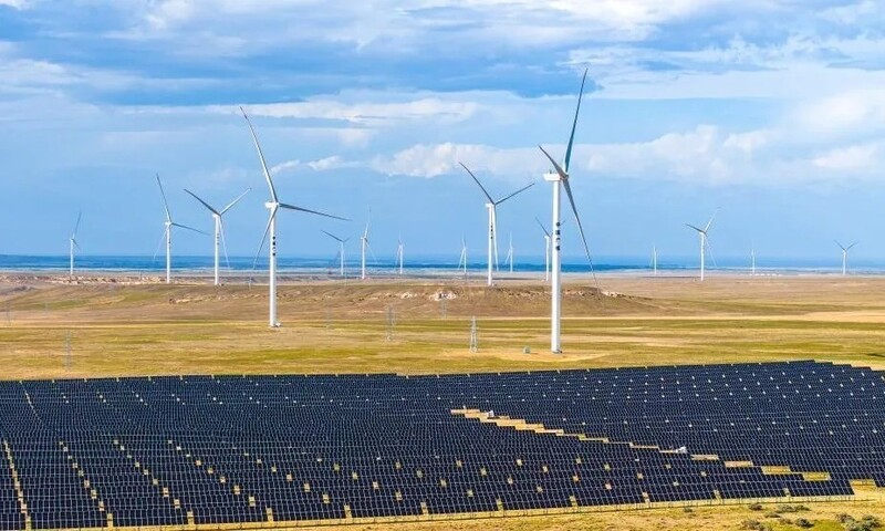 중국 신장웨이우얼(위구르)자치구 알타이현에 있는 풍력·태양광 발전 시설. 신화망 갈무리 |
