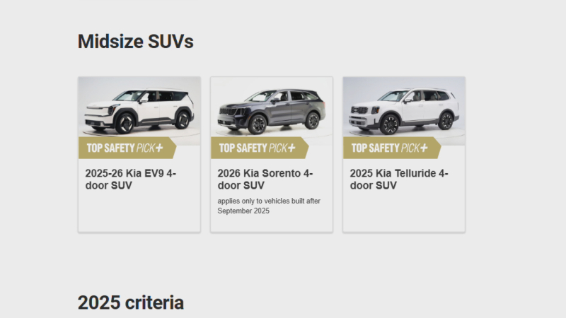 올해 IIHS 평가는 뒷좌석 승객 안전 기준이 강화됐으며, TSP+는 전면·측면 충돌에서 ‘훌륭함’ 등급을 받아야 획득할 수 있도록 기준이 상향됐습니다.