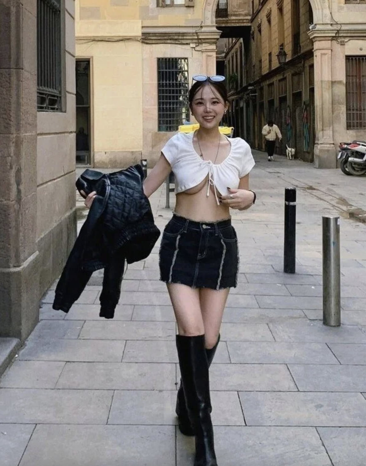 최근 각종 온라인 커뮤니티에는 '홍영기 근황'이라는 제목의 사진이 확산됐다. 해당 사진에서 홍영기는 국외로 추정되는 거리에서 짧은 상의와 미니스커트, 롱부츠를 조합한 차림으로 나타났다.