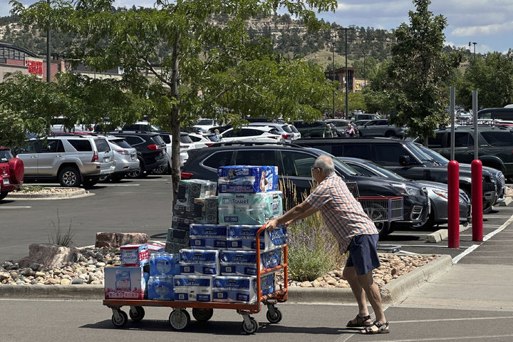 [콜로라도스프링스=AP/뉴시스] 23일(현지 시간) 미 상무부는 3분기 국내총생산(GDP) 증가율 잠정치가 연율 기준 4.3%로 집계됐다고 발표했다. 사진은 지난 8월 12일(현지 시간) 미국 콜로라도주 콜로라도스프링스 소재 코스트코 주차장에서 한 쇼핑객이 카트를 미는 모습. 2025.12.24 |