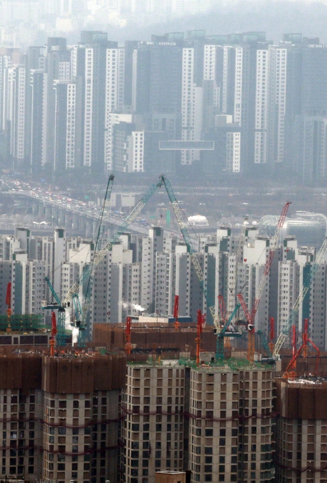 정부가 주택 공급 계획을 내년 초에 발표하기로 한 가운데 한국은행이 23일 공개한 ‘최근 주택 시장 특징과 금융시스템 영향’ 보고서를 발표했다. 보고서에 따르면 11월 말 현재 서울 아파트 시가총액이 전국에서 차지하는 비중(43.3%)은 전 고점인 2020년 8월 말 43.2%를 넘어섰다. 실제로 서울 주택시장 위험지수는 3분기 0.90으로 한은이 통계를 공개한 2018년 이후 가장 높은 상태다. 사진은 이날 서울 시내 아파트 단지 모습. 연합뉴스 |