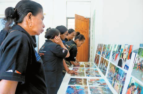 BENU 종료행사에서 참석자들이 지난 사업의 활동 사진을 살펴보고 있다. [사진 월드비전] |