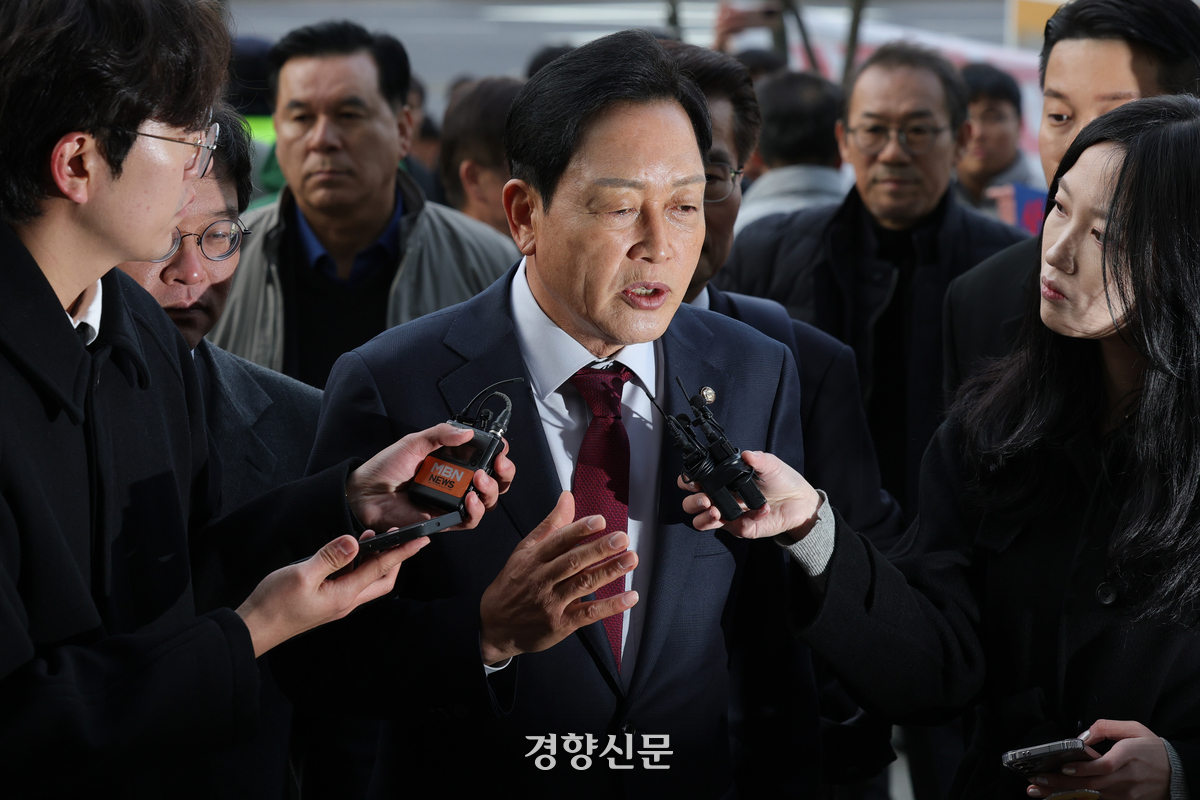 김선교 국민의힘 의원이 26일 서울 종로구 광화문 KT 빌딩에 마련된 김건희 특검 사무실에 피의자 신분으로 출석하며 취재진의 질문에 대답하고 있다. 정효진 기자 |