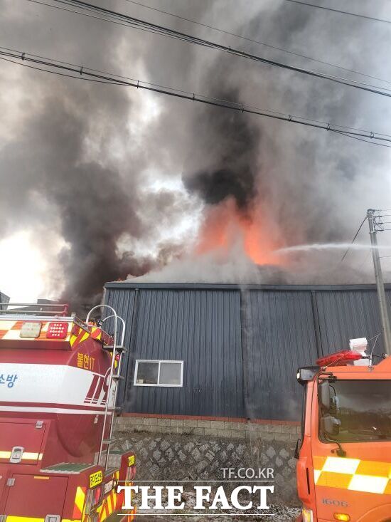 [더팩트ㅣ양주=양규원 기자] 24일 오전 8시 42분쯤 경기 양주시 하패리 한 의류보관 창고에서 화재가 발생, 근무 중이던 직원 3명이 대피했다.