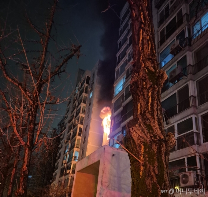 24일 새벽 서울 송파구 방이동 올림픽선수기자촌 아파트에서 화재가 발생했다. /사진=독자제공. |