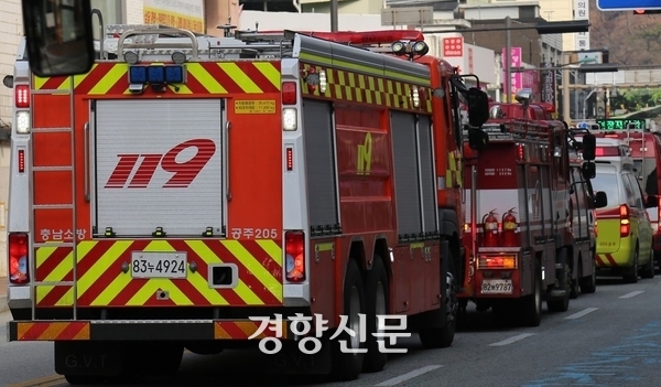 현장으로 출동하는 소방차. 기사와 관계없음. 경향신문 자료사진. |