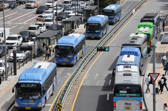 서울역 앞 버스환승센터 정류장 버스 모습. 연합뉴스 |