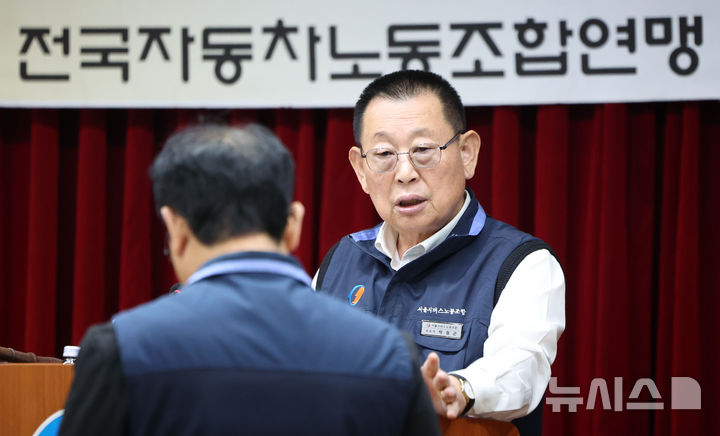 [서울=뉴시스] 김선웅 기자 = 박점곤 서울시버스노동조합 위원장이 24일 서울 용산구 서울시버스노동조합에서 서울시버스노조 지부위원장 총회에서 파업 여부, 시행 날짜, 방식 등을 논의하고 있다. 2025.12.24. mangusta@newsis.com |
