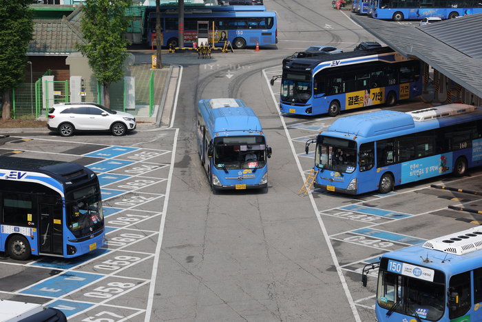 서울시의 한 공영차고지에서 버스들이 운행을 준비하며 대기하고 있다. [연합뉴스] |