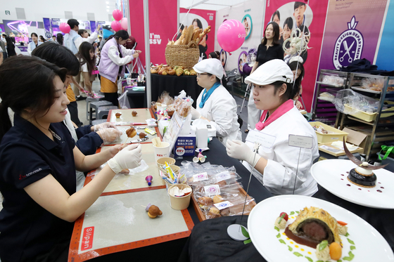 지난 9월 대구 엑스코에서 열린 '2025 대구교육청 직업교육박람회-특·마(특성화고·마이스터고) 페스티벌'을 찾은 학생들이 상서고 부스에서 제과제빵 실습을 하고 있다. 뉴스1 |
