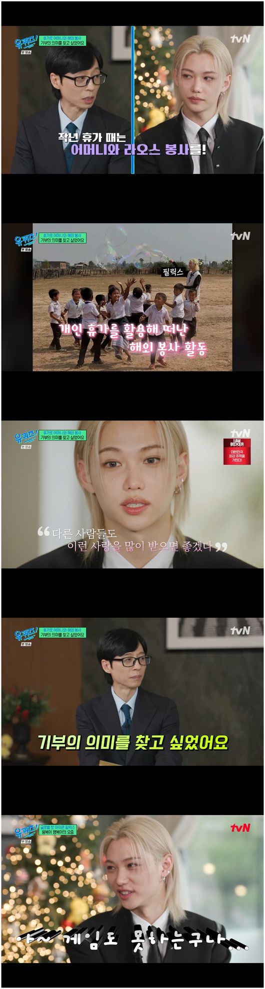 [OSEN=오세진 기자] ‘유퀴즈 온 더 블럭’ 스트레이 키즈 필릭스가 기부에 대한 의미를 곱씹었다고 밝혔다.