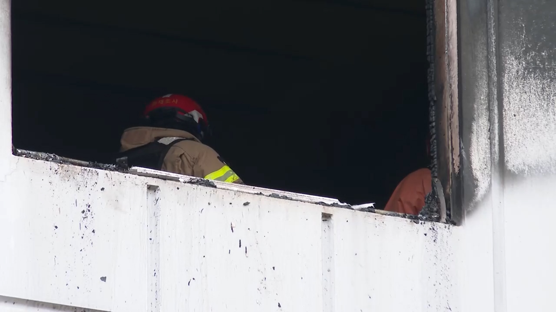 아파트 외벽이 시커멓게 그을렸습니다.
