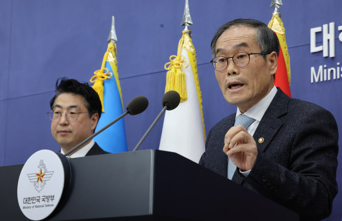 이용철 방위사업청장이 지난 24일 서울 용산구 국방부 브리핑룸에서 한국형 차기 구축함(KDDX) 사업추진방안 결정 내용 설명을 하고 있다. (사진=연합뉴스) |
