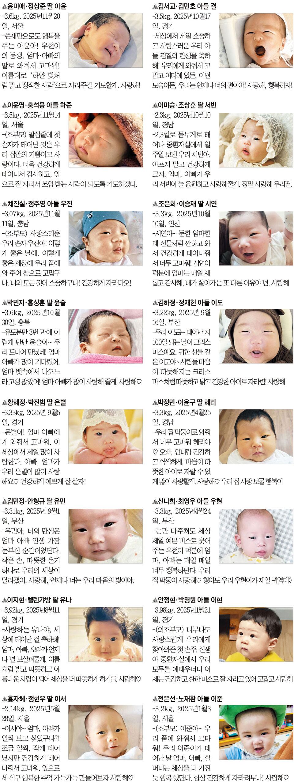 온 가족에게 기쁨을 안겨 준 아기의 탄생을 알려주세요. 홈페이지 주소 입력창에 아가야안녕.com이라고 입력하면 됩니다. 매일유업 육아 정보 사이트 매일아이(maeili.com)를 통해서도 접속할 수 있습니다. 추첨을 통해 출산 소식과 사진이 지면에 실린 가족에게는 ①케이크 구매권 ②엄마와 아이를 위한 매일두 포인트 3만원 ③출산 소식을 생일 날짜 본지 1면에 담은 PDF 파일 ④조선일보 1개월 무료 구독권을 드립니다. 당첨자 중 한 가족을 선정하여 해당 지면을 고급 프레임에 담아 제공하는 조선일보 리프린트도 제작해 드립니다. 홈페이지에서는 균형 영양식 메디웰 2만원 할인 혜택도 드리고 있습니다.