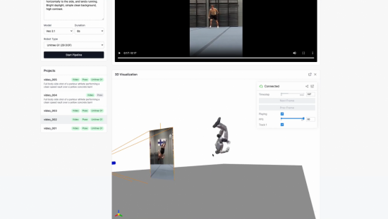 비디오투로봇은 영상 속 인간의 동작을 로봇 학습 데이터로 변환하는 엔진이다. 구체적으로 ▲인간과 근접 상호작용 ▲급경사 미끄러짐 ▲고하중 물체 조작 시의 균형 붕괴 등 현실에서 직접 연출하기 어려운 시나리오를 생성형 인공지능(AI)을 활용해 로봇 모션 데이터로 안전하게 변환한다.