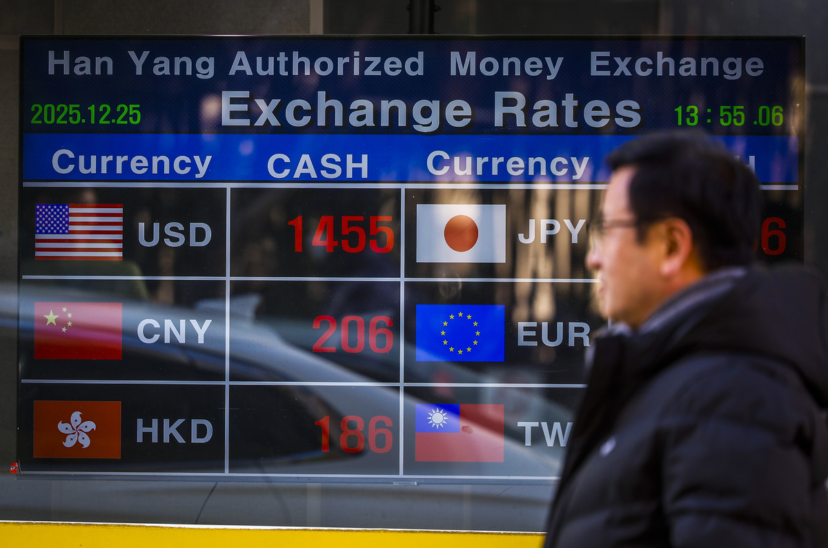 정부의 외환 수급대책 발표 이후 원·달러 환율이 하락한 가운데 25일 서울 중구 명동의 환전소 전광판에 환율 정보가 나타나 있다. 뉴시스 |
