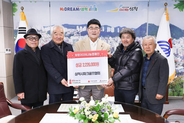 [스포츠서울ㅣ김기원기자]삼척시파크골프협회(회장 오정섭)는 26일 회원들이 모금한 이웃돕기 성금 2,226,000원을 삼척시에 기탁했다.