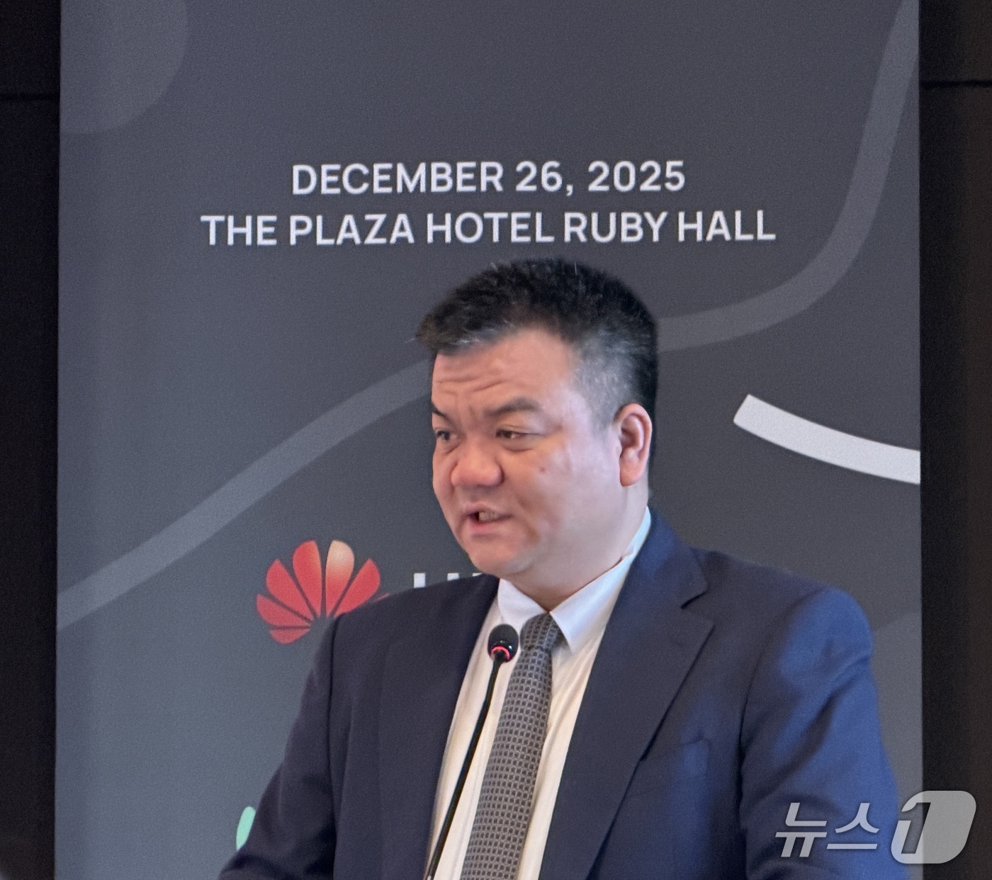 발리안 왕 화웨이 코리아 CEO가 26일 서울 플라자호텔에서 열린 ''화웨이 데이 2025' '에 참석해 연설하고 있다. 2025.12.26/ ⓒ 뉴스1 김민수 기자 |