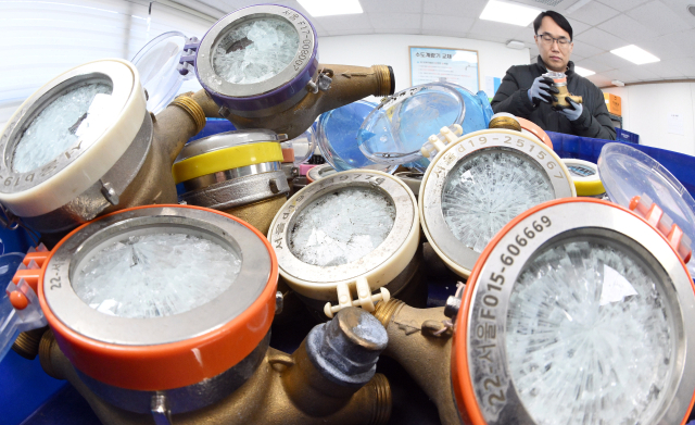 서울의 체감온도가 영하 20도까지 떨어지는 등 올겨울 최강 추위가 찾아온 26일 서울 강북구 북부수도사업소에서 관계자들이 동파된 수도계량기를 살펴보고 있다. 서울시는 이날 오전 9시를 기점으로 올겨울 첫 수도계량기 동파 '경계' 단계를 발령하고 24시간 비상 대응 중이다. 계량기함에 보온재를 설치하고 장시간 외출 시 수도꼭지를 약하게 틀어두면 동파 예방에 효과적이다. 오승현 기자 2025.12.26