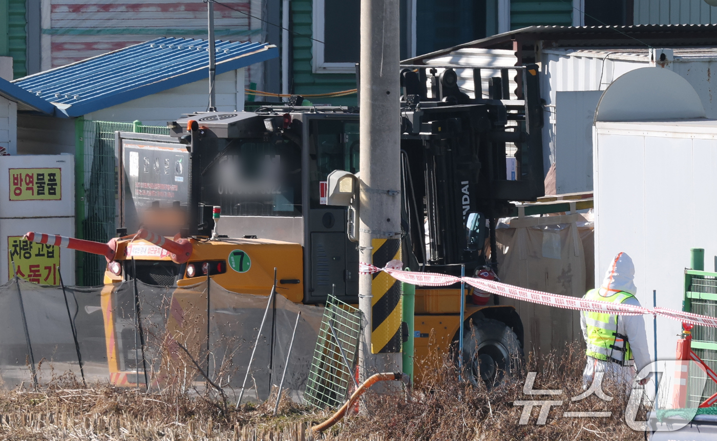 (평택=뉴스1) 김영운 기자 = 26일 경기 평택시의 한 산란계 농장에서 고병원성 조류인플루엔자(AI)가 발생해 방역당국이 통제 및 방역 작업을 하고 있다. 2025.12.26/뉴스1