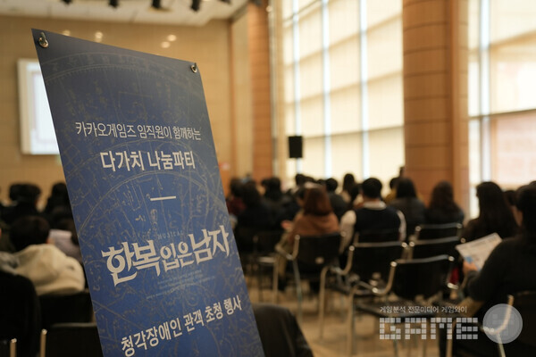 이번 활동은 카카오게임즈 임직원이 자발적으로 참여하는 CSR 캠페인 '다가치 나눔파티'의 아홉 번째 사업으로, 12월 24일 서울시 충무아트센터에서 진행됐다. 이날 행사에는 국립서울농학교 중·고등부 학생 약 70명이 초청돼 뮤지컬 '한복 입은 남자'를 관람했다.