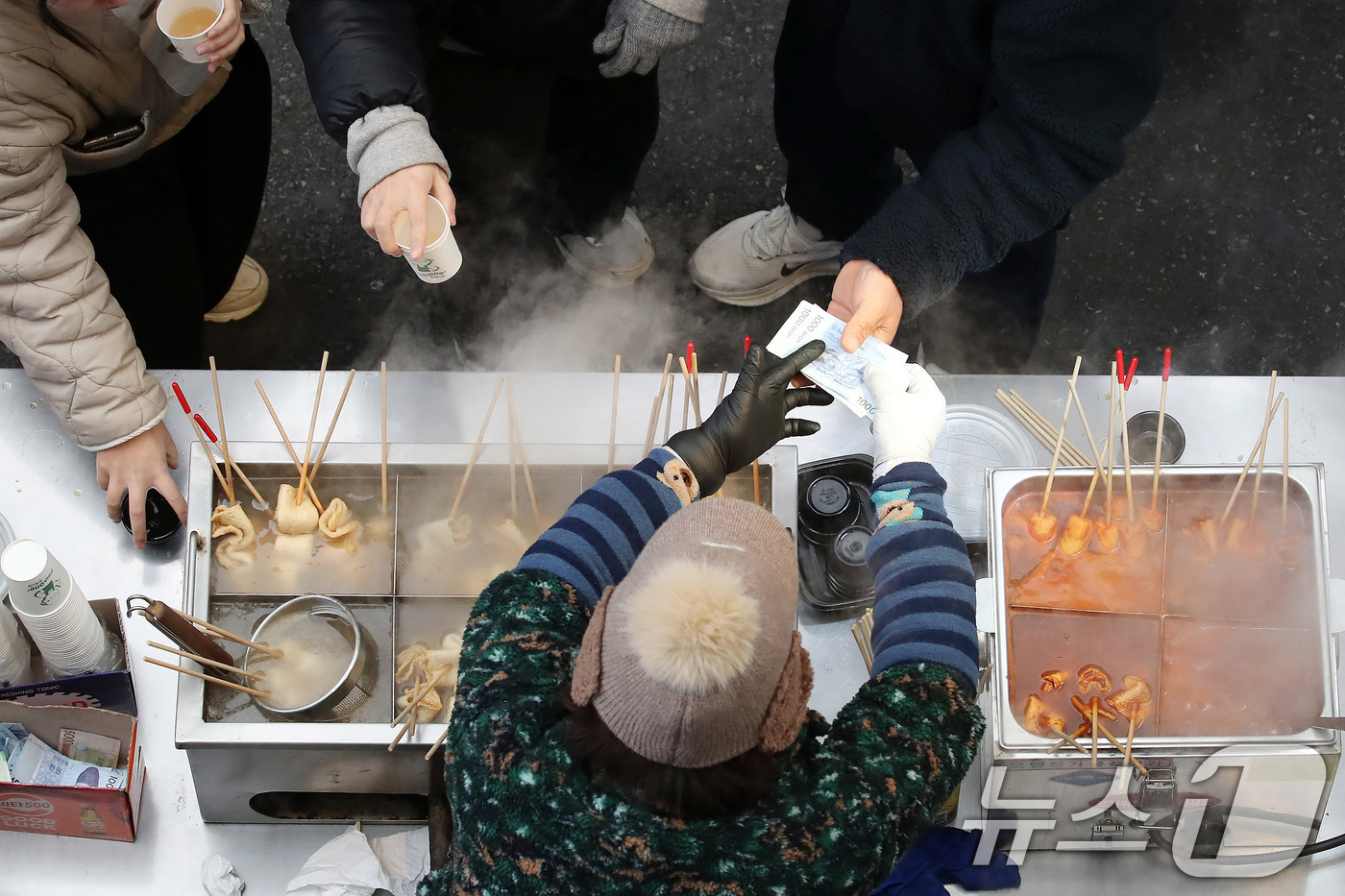 (대구=뉴스1) 공정식 기자 = 대구·경북 대부분 지역에 한파특보가 내려진 26일 대구 중구 서문시장 한 어묵가게가 손님으로 붐비고 있다. 2025.12.26/뉴스1