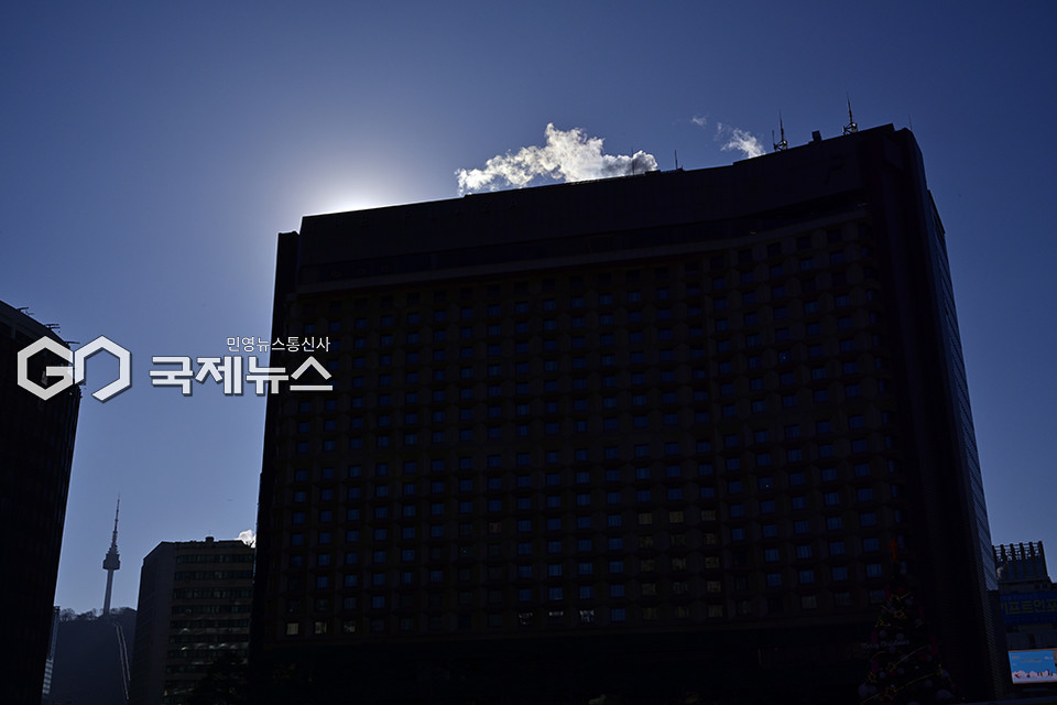 (서울=국제뉴스) 안희영 기자 = 올 겨울 최강의 한파가 기승을 부리고 있는 26일 정오께 서울시 종로구 광화문광장과 서울광장스케이트장, 청계천 일대의 체감기온이 영하 12.8도를 기록했다. 사무실과 호텔, 상가 등에는 난방 가동으로 인한 대형 연기가 모락모락 피어오르며 최강 한파의 여파를 여실히 드러냈다. 한편 금일 사회복지공동모금회 사랑의 열매는 나눔온도 77.3도를 기록하며 전국 모금액이 3,479.8억 원이 집계 되었다.