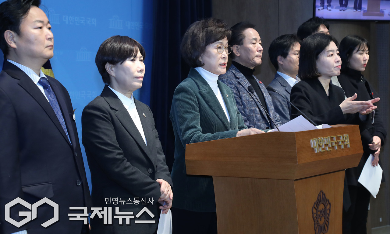 (서울=국제뉴스) 오세희 더불어민주당 의원이 26일 오전 서울 여의도 국회 소통관에서 쿠팡 사태에 따른 입점 소상공인 피해 대책 촉구 기자회견을 열고 발언하고 있다./사진=이용우 기자