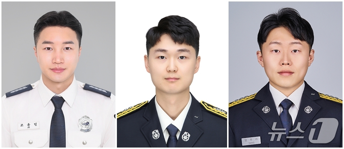 군산소방서는 '119 HERO 구급대원' 3명을 선정했다. 사진 왼쪽부터 조윤민 소방장, 유환 소방사, 양무리 소방교.(군산소방서 제공, 재판매 및 DB 금지) |