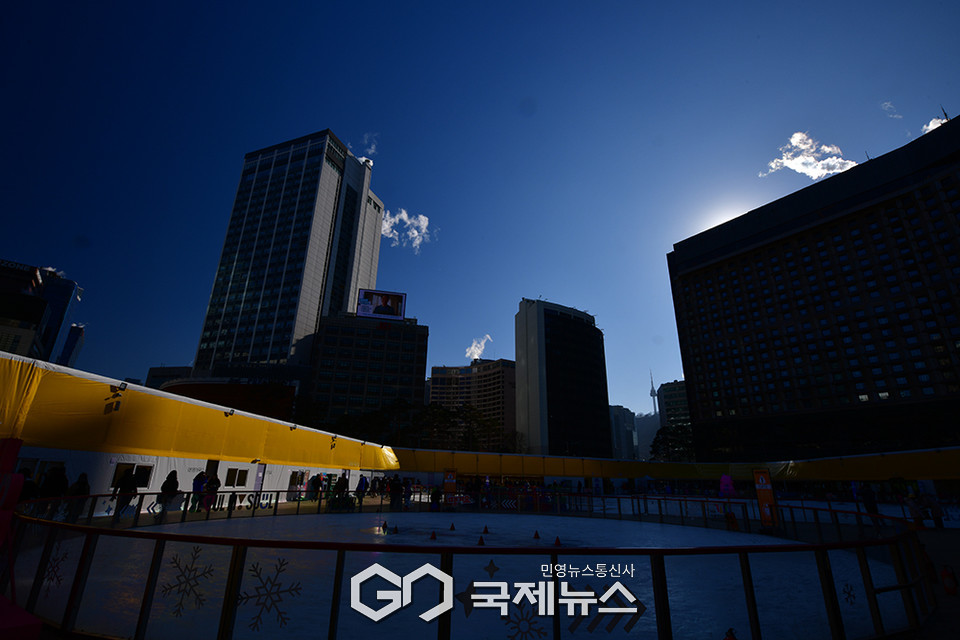 (서울=국제뉴스) 안희영 기자 = 올 겨울 최강의 한파가 기승을 부리고 있는 26일 정오께 서울시 종로구 광화문광장과 서울광장스케이트장, 청계천 일대의 체감기온이 영하 12.8도를 기록했다. 사무실과 호텔, 상가 등에는 난방 가동으로 인한 대형 연기가 모락모락 피어오르며 최강 한파의 여파를 여실히 드러냈다. 한편 금일 사회복지공동모금회 사랑의 열매는 나눔온도 77.3도를 기록하며 전국 모금액이 3,479.8억 원이 집계 되었다.