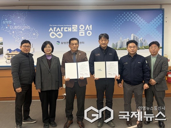 (음성=국제뉴스) 이재기 기자 = 충북 음성 삼성면 소재 (주)백조씽크가 26일 2026년~2030년까지 5년간 총 1억원의 장학금을 삼성면장학회에 기탁하기로 협약했다.