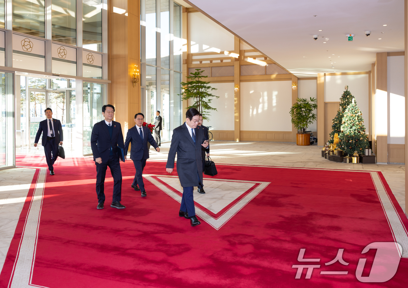 청와대 집무를 앞둔 이재명 대통령이 26일 서울 용산 대통령실 청사로 마지막 출근을 하고 있다. (대통령실 제공. 재판매 및 DB 금지) 2025.12.26/뉴스1 ⓒ News1 이재명 기자 |