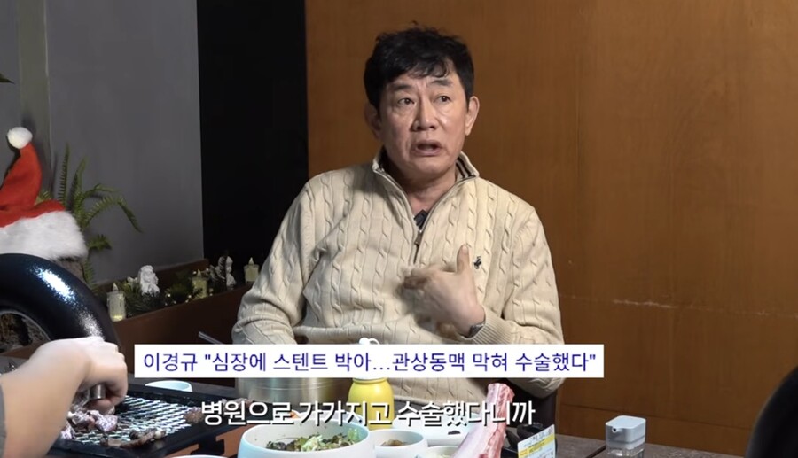 이어 이경규는 '붕어빵' 촬영 당시 심장 스텐트 시술을 받았다고 털어놨다. 그는 "('붕어빵') 녹화할 때 내가 심장이 막혀서 녹화 끝나고 병원에 가서 스텐트 시술을 받았다. 다른 사람한테 녹화를 넘기지 않고 다 끝내고 시술을 했다"라고 했다.