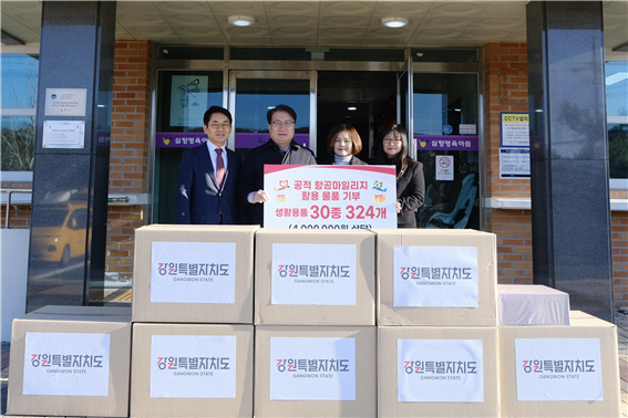 [스포츠서울ㅣ춘천=김기원기자]강원특별자치도는 12월 26일(금), 도청 직원들이 자발적으로 기부한 공적 항공마일리지를 활용해 약 400만 원 상당의 생활용품 320여 점을 마련해 도내 아동복지시설에 전달했다고 밝혔다.