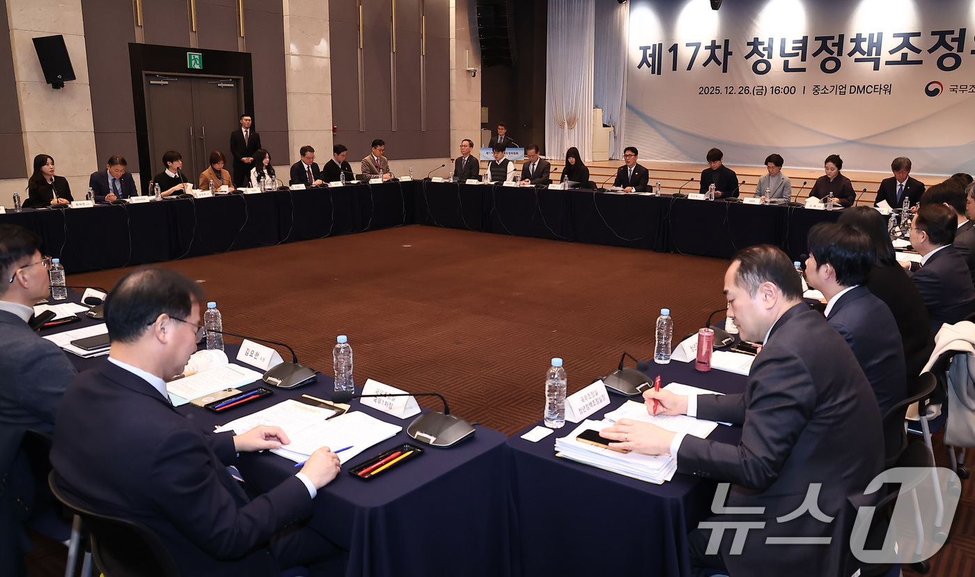 (서울=뉴스1) 김성진 기자 = 김민석 국무총리가 26일 서울 마포구 중소기업DMC타워에서 열린 제17차 청년정책조정위원회 회의에서 모두발언을 하고 있다. 2025.12.26/뉴스1