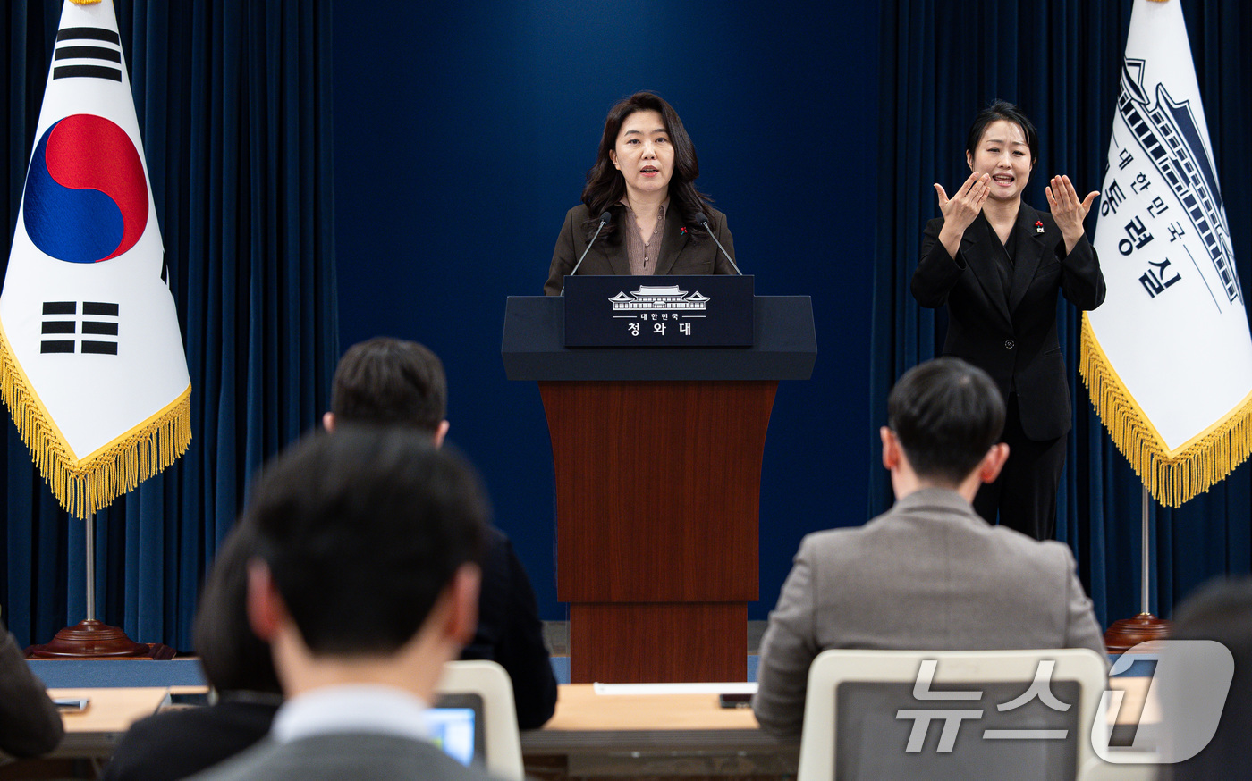 (서울=뉴스1) 이재명 기자 = 강유정 대통령실 대변인이 26일 청와대 춘추관에서 위험직무 순직 유가족 초청 오찬 관련 브리핑을 하고 있다. 2025.12.26/뉴스1
