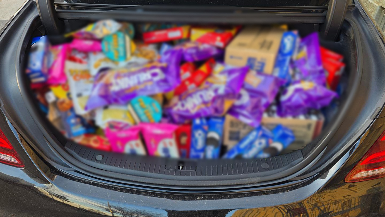 ▲ 트렁크에 실린 과자와 음료