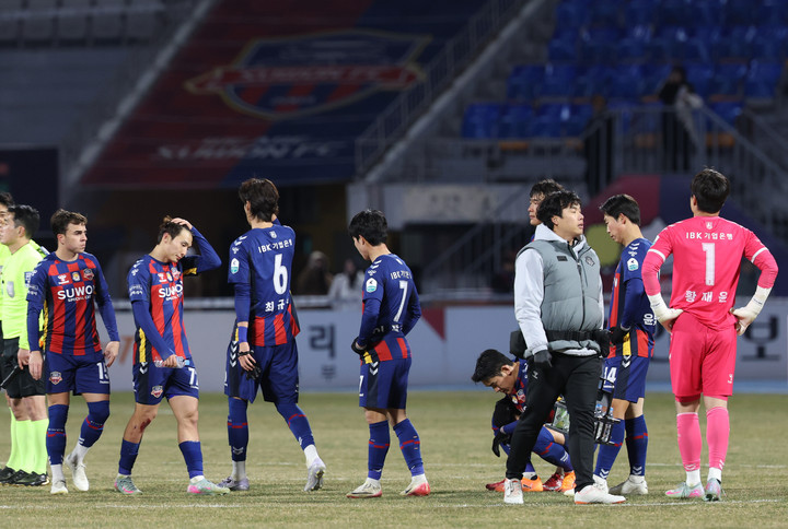 올해 K리그1 정규리그에서 10위에 머무르며 승강 플레이오프(PO)를 치른 수원FC는 부천FC에 1,2차전을 모두 패하며 끝내 강등이 확정됐다.